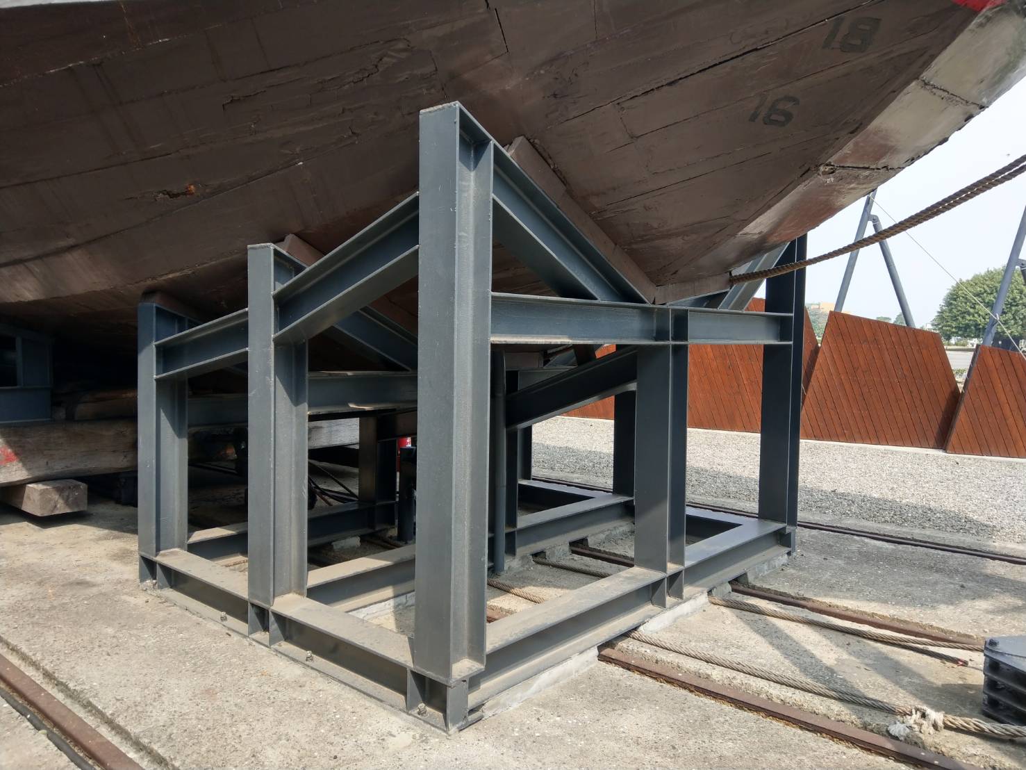 臺灣船緊急修補及船艏支撐作業(鋼構與船體之襯墊)