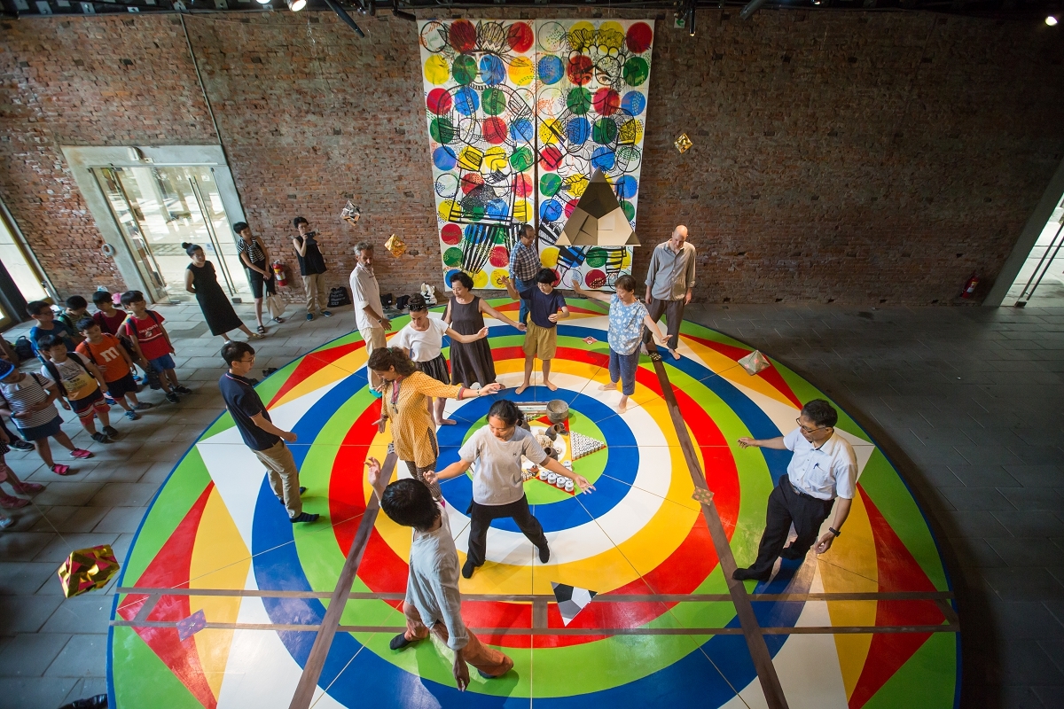 於曼陀羅周圍,為藝術家從本市文資建材銀行借用舊材,如來自臺南司法博物館的舊式水管連結水的意象、水交社文化園區的日式建築木窗框條則回應木的意象,藉由藝術創作,讓舊材再利用更多一種運用的可能性。