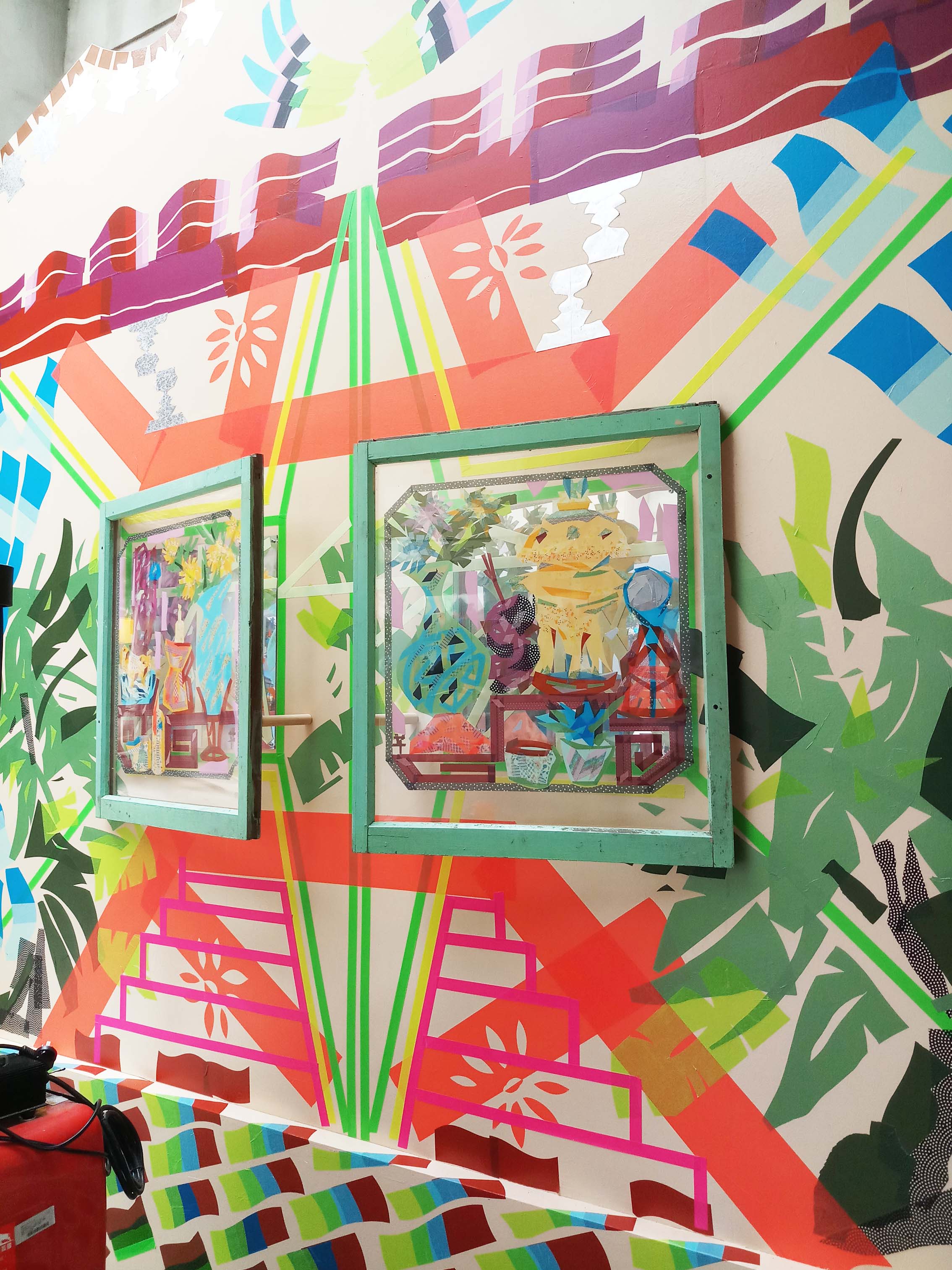 根據歷史脈絡,糖廠及佳里區域擁有台日文化的底蘊,嘉義也是交趾陶原鄉,此次現地裝置作品融合相關視覺元素,在地特有的交趾陶、剪黏為發想,將人物、鳥獸、山水等取其豐富的造形、色彩、吉祥歡樂等意象,對應各式膠帶等多彩性質的拼貼,融入拆遷下的建物元件,重新編碼組構,產生新的故事,將糖廠空間介面視為大型的光劇場,使符號轉化為可見的光影效果,發生在空間中,透過搜集、修補與拼湊的過程,現地製作的紀錄與草圖,串連土地記憶與文化地景,形塑時空轉換下的風物景觀。