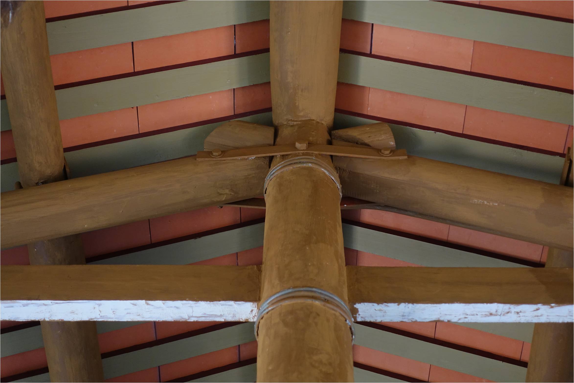 為「105年0206地震-楠西區歷史建築鹿陶洋江家宗祠災害復建工程」公廳之修復工程-右一架棟、祖祠堂楹仔等木構件修復作業申請本市建材銀行物料。