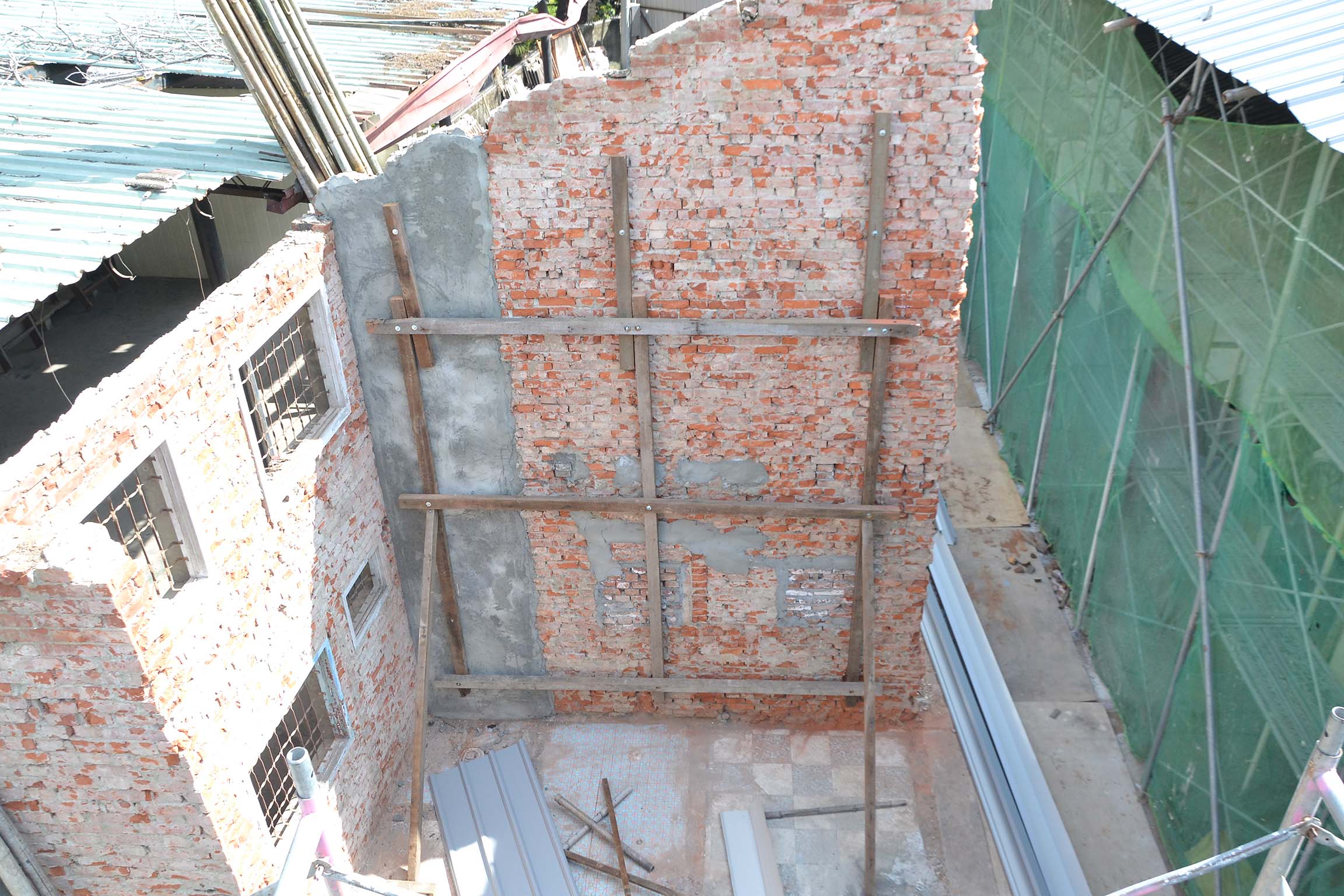 歷史建築原白金町日式宿舍修復工程磚牆緊急支撐(修復中)