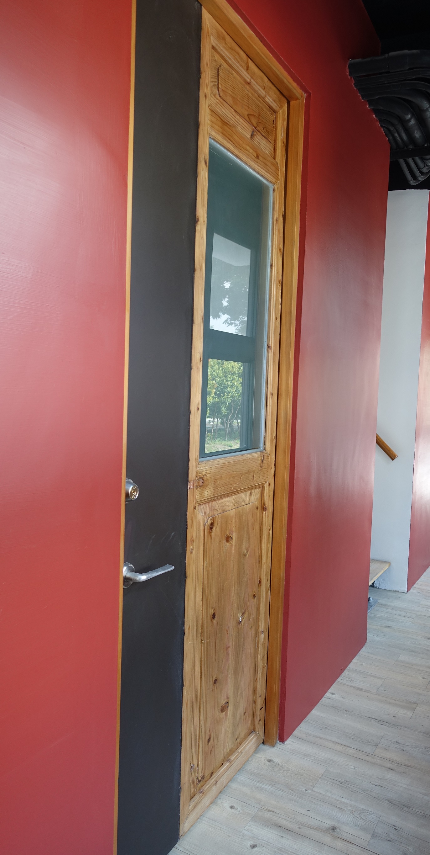 本案除妥善運用現地舊材料,如鐵花窗、花磚及屋架木構等建材之修復續用巧思,並為彰顯歷史老屋保存改造特色,本府文化局向建材銀行申請舊材作為室內門扇。