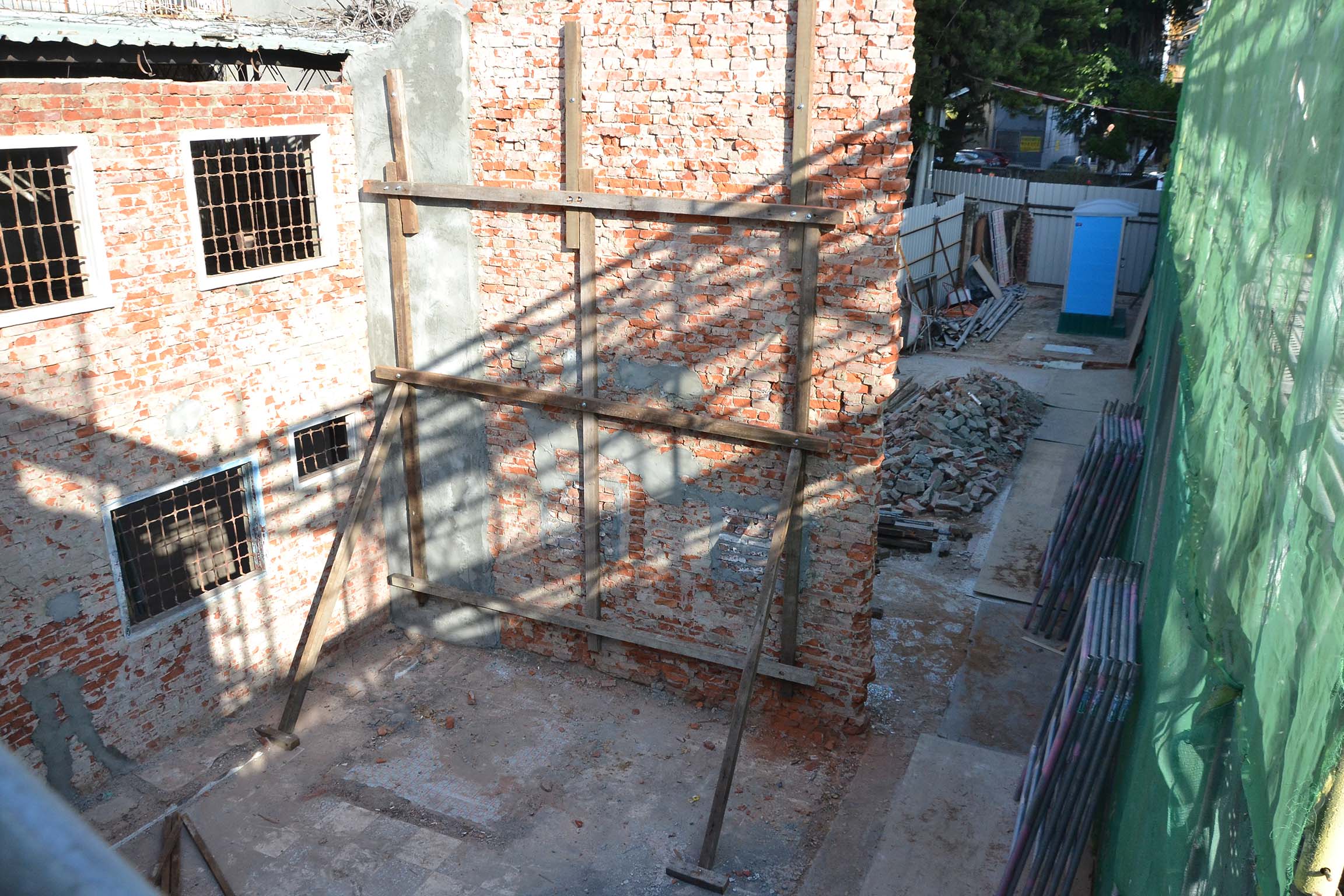 歷史建築原白金町日式宿舍修復工程磚牆緊急支撐(修復中)